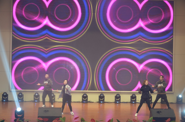 今年的迎新文藝匯演有三個(gè)顯著特點(diǎn):一是員工和員工子女參與人數(shù)有所增加;二是語言類節(jié)目均為公司員工原創(chuàng),舞蹈類節(jié)目的員工原創(chuàng)占比達(dá)一半以上;三是現(xiàn)場三次微信互動搖獎,使現(xiàn)場觀眾幾乎悉數(shù)參與到互動當(dāng)中,增加了晚會的親和力。