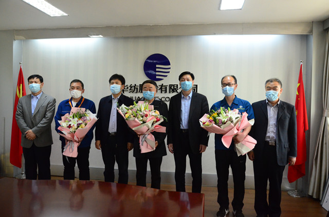 近日,五一勞動(dòng)節(jié)來臨之際,濱州市市委常委、秘書長張延廷,市政協(xié)副主席、市總工會(huì)主席商玉昌,市總工會(huì)黨組書記、分管日常工作的副主席劉祖慶,市總工會(huì)黨組成員、副主席、經(jīng)審委主任王恩東一行,來到華紡股份有限公司,為濱州市五一勞動(dòng)獎(jiǎng)?wù)芦@得者、服裝車間主任晁金光頒發(fā)勞動(dòng)獎(jiǎng)?wù)?,向全國紡織行業(yè)勞動(dòng)模范、山東省勞動(dòng)模范、公司黨委書記、董事長王力民,山東省勞動(dòng)模范、電氣高級(jí)工程師趙奇生和晁金光三位企業(yè)勞模代表贈(zèng)送鮮花、表達(dá)慰問,并與他們進(jìn)行了深入座談。