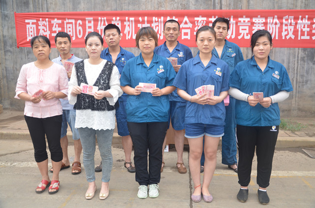 收到獎勵金的員工們臉上洋溢著喜悅。“收到勞動競賽獎勵非常開心,我們一定會再接再厲,為染好每一米布而努力!”面二車間5#打底機組組長程建龍說到。面料車間主任曹劍總結(jié)到:“此次階段性競賽獎勵的發(fā)放,主要是對第一階段完成獎勵的表彰,也是為6月份中、下旬再接再厲的發(fā)動。希望大家在已有成績基礎(chǔ)上,繼續(xù)戰(zhàn)高溫、斗酷暑,全力以赴,再創(chuàng)新佳績。”