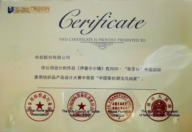 導(dǎo)讀:9月2日,以“潮流·生活”為主題的2020·“張謇杯”中國國際家用紡織品產(chǎn)品設(shè)計大賽頒獎盛典在江蘇南通舉行。公司家紡作品《伊普爾小鎮(zhèn)》,榮獲“中國家紡潮流風(fēng)尚獎”。