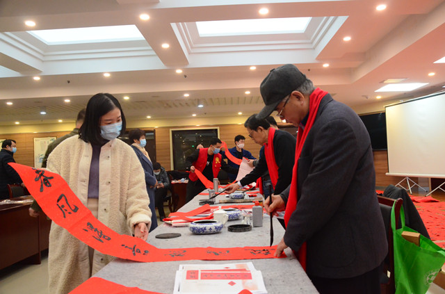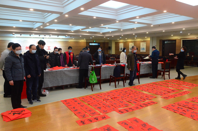活動(dòng)中,市總工會(huì)黨組成員、副主席戴新生為到場(chǎng)的企業(yè)職工和勞模代表,分發(fā)了現(xiàn)場(chǎng)書寫出的墨寶以及印制的春聯(lián),并向全市廣大企業(yè)職工送上新春祝福。