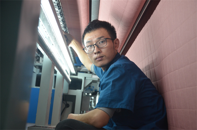 面料車間4號打底機(jī)的紀(jì)建峰,進(jìn)入公司已10年有余,從事過多個機(jī)臺的操作工種。