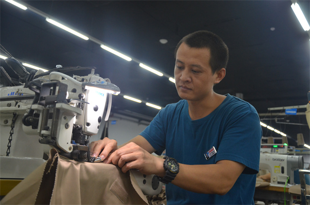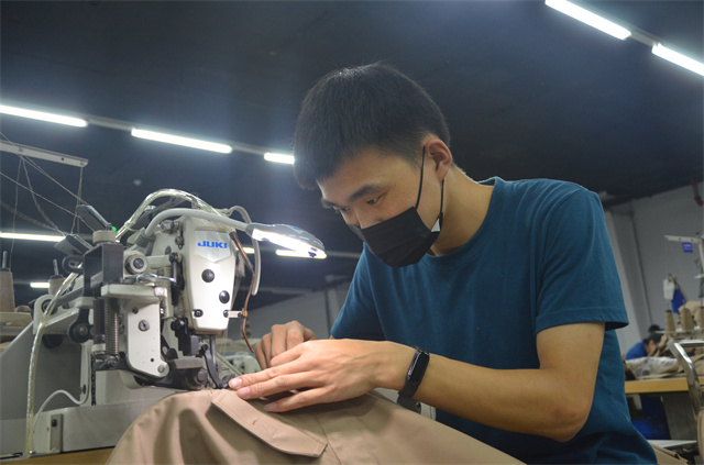 服裝車間縫制二班多能工郭叢叢進(jìn)入公司10年來,靠著不斷追求精進(jìn),成長為對服裝生產(chǎn)各環(huán)節(jié)駕輕就熟的“老把式”。