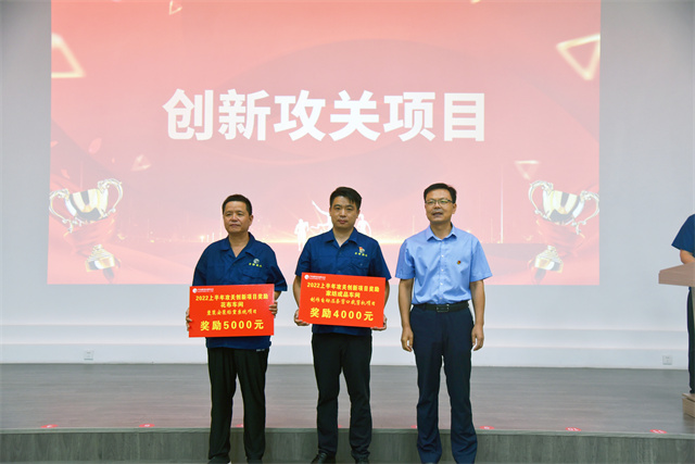 會(huì)上,李風(fēng)明宣讀了公司對(duì)2022年上半年度CQI項(xiàng)目、創(chuàng)新攻關(guān)成果等表彰決定;盛守祥為CQI項(xiàng)目代表、創(chuàng)新攻關(guān)一等獎(jiǎng)項(xiàng)目代表頒發(fā)獎(jiǎng)勵(lì)牌,總經(jīng)理閆英山為各車間創(chuàng)新攻關(guān)其他受獎(jiǎng)項(xiàng)目代表頒發(fā)獎(jiǎng)勵(lì)牌,李風(fēng)明為質(zhì)量之星、效率之星、工藝操作之星受獎(jiǎng)代表頒發(fā)榮譽(yù)證書(shū),公司安全總監(jiān)孫中然為現(xiàn)場(chǎng)6S之星、精益提案之星受獎(jiǎng)代表頒發(fā)榮譽(yù)證書(shū)。會(huì)議由公司團(tuán)委書(shū)記陳冰主持。