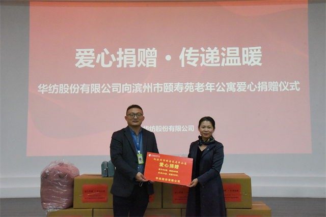 捐贈儀式上,鄢院長對公司關(guān)愛老人的善德善行表示感謝與敬意。鄢院長說:“天氣漸冷,華紡的愛心捐贈無異于雪中送炭,及時而又溫暖。”曲偉華表示,讓老人安享晚年是全社會的責(zé)任,能為老人盡一點(diǎn)綿薄之力,對公司來說也非常有意義。