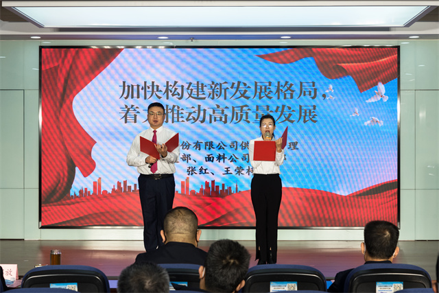 公司供應(yīng)鏈管理黨支部、面料公司黨支部代表張紅、王榮梓誦讀《加快構(gòu)建新發(fā)展格局 著力推動高質(zhì)量發(fā)展》。堅(jiān)持實(shí)事求是,融入高質(zhì)量發(fā)展大局;堅(jiān)持守正創(chuàng)新,拓寬高質(zhì)量發(fā)展路徑;堅(jiān)持行穩(wěn)致遠(yuǎn),提升高質(zhì)量發(fā)展能力。華紡股份將以高質(zhì)量發(fā)展為目標(biāo),引領(lǐng)企業(yè)向更高水平闊步邁進(jìn)。