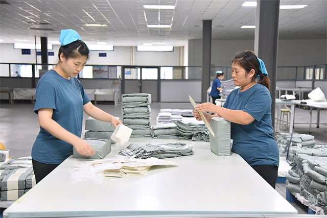 在高強度的工作環(huán)境下,王營和吳志叢不僅沒有放慢腳步,反而更加注重細節(jié),力求完美,確保每一件產(chǎn)品都達到卓越的品質(zhì)標(biāo)準(zhǔn)。最終,憑借她們不懈的努力與頑強的拼搏,完成天絲枕套熨燙4000件,整疊包裝枕套1600對,以兩人之力完成了相當(dāng)于五至六人的工作量。