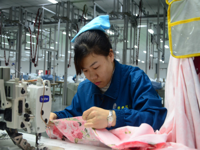 導讀:今年27歲的周之平是公司家紡成品車間吊掛二班的一名縫制工,以目前正在生產(chǎn)的一款被罩產(chǎn)品為例,她每天日均產(chǎn)量達到了220件,在公司同序列工種中保持領(lǐng)先。